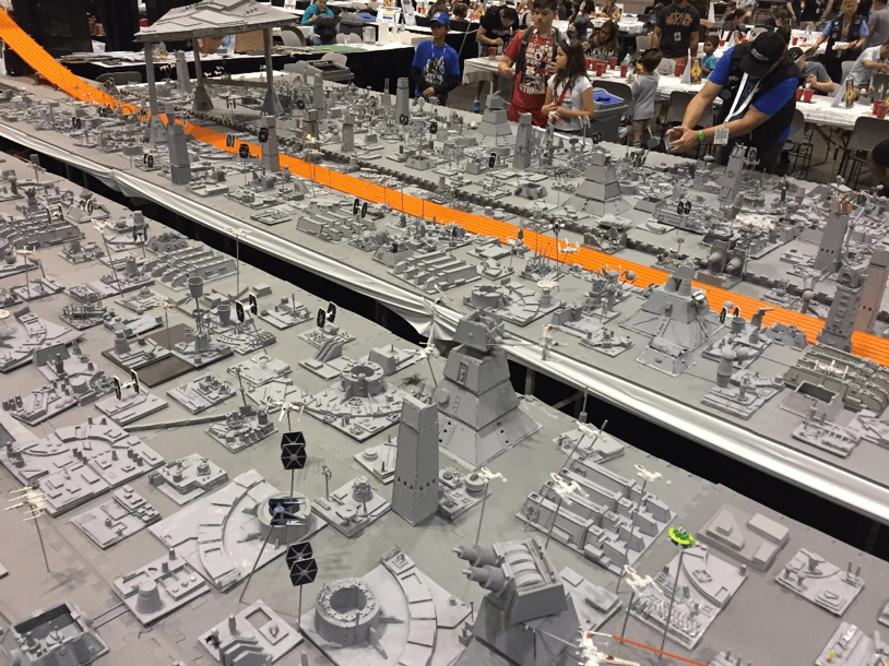 The convention moved to Orlando, where we created one of our largest builds to-date with the Battle of Hoth. Our build had both the AT-AT battle with trenches and the Rebel Base with halls, rooms, and hanger bays. Fans made rocky ice features, trenches, turrets, and the Rebel Base out of foam, foamcore, cups, and plates.